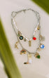 "Get double the charm with our must-have necklace! This silver beauty features a double layer design and a variety of playful charms. With a 15" chain and 3" extender, it's the perfect accessory for any outfit. Don't miss out on this fun addition to your jewelry collection!"